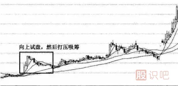 一般而言,莊家為了了解某只股的籌碼鎖定程度,必須在風(fēng)平浪靜的時(shí)候,出其不意地,猛然將該股的股價(jià)大幅拉升,然后讓其自然回落,以便測(cè)試盤中籌碼的拋壓情況。如果拉升時(shí)有大量的拋盤涌出,說明在該價(jià)位以下莊家可以展開打壓建倉動(dòng)作,如果拉升時(shí)拋盤稀少,說明該股在該價(jià)位以下收集籌碼時(shí)會(huì)有困難,必須考慮以更高的成本價(jià)格進(jìn)行拉高收集,才能完成建倉任務(wù)。具體表現(xiàn)在K線圖表上的話,就是在風(fēng)平浪靜中猛然出現(xiàn)一根長(zhǎng)長(zhǎng)的上影線,這叫向上試盤,目的是測(cè)試盤中拋壓大小,分辨建倉的難易程度。