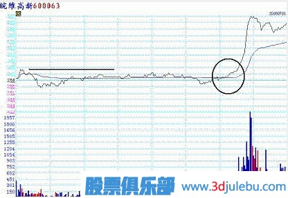 皖維高新在2005年7月1日下午2:10左右,股價(jià)開始緩慢向上,在將要突破盤中新高時(shí),在成交量放大的推動(dòng)下股價(jià)快速的向上上漲,并且有力的突破了盤中的最高點(diǎn)!