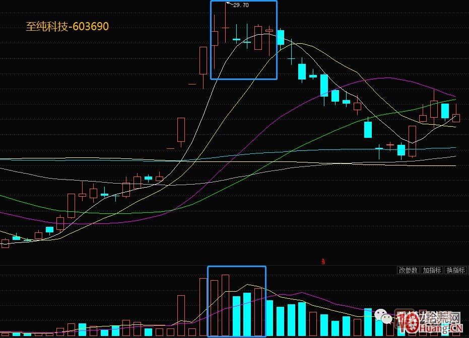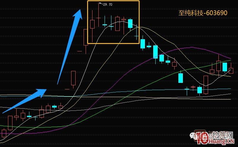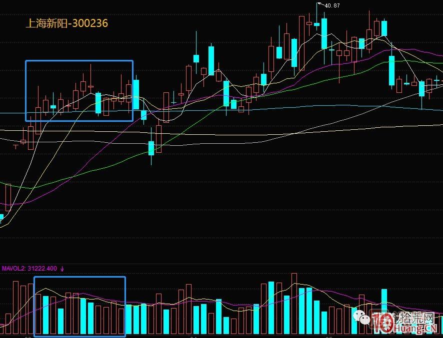3、連續(xù)上漲之后高位轉(zhuǎn)入橫盤,并且K線越來越弱。