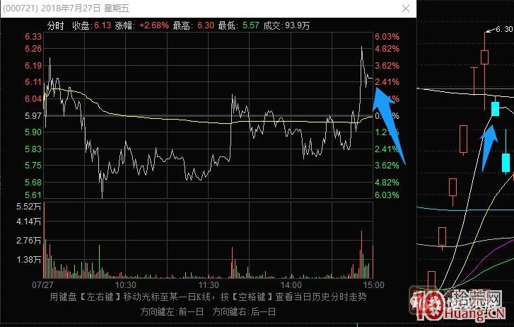 4、前一天強勢的漲停板,次日開盤分時出現(xiàn)“力不從心”。
