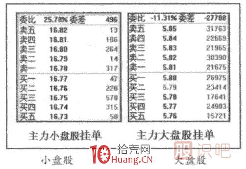 從圖中我們可以看出,無論是小盤股還是大盤膠,主力的掛單不管是買和賣都是一個連續(xù)的掛單,每一個買賣價位都是按照最小買賣值一分錢一分錢地掛出,這是我們識別主力掛單最重要的標志之一。