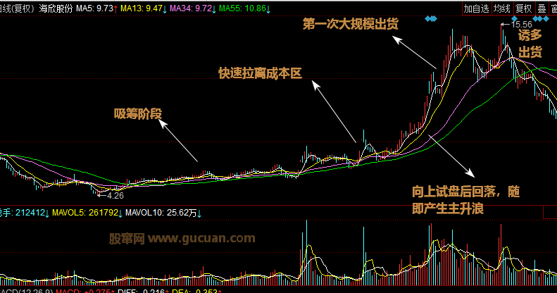 上面是莊家坐莊的整個(gè)過程,希望讀者能夠認(rèn)真體會,深刻認(rèn)識量能在分析莊家行為中的重要性。