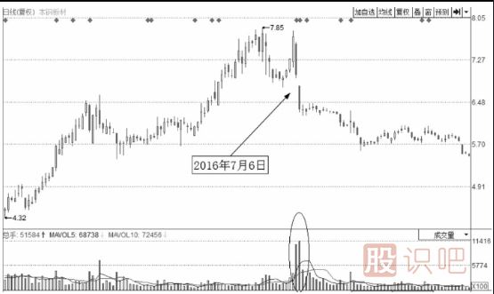向下缺口賣點圖7-48是本鋼板材(000761)的日K線圖,該股出現(xiàn)了較大幅度的上漲,2016年7月6日,出現(xiàn)了一個向下放量缺口。向下缺口出...