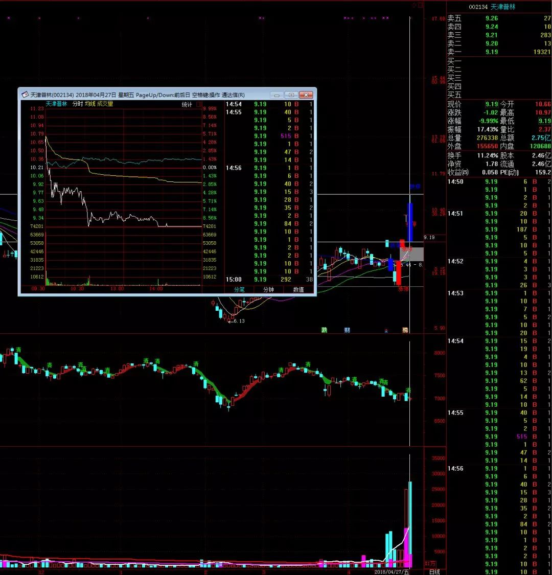 (2)小幅高開3%左右的幅度,開盤就下跌,急速下跌,這種就很關(guān)鍵,基本是如果競價沒有處理,就及時在跌破漲停