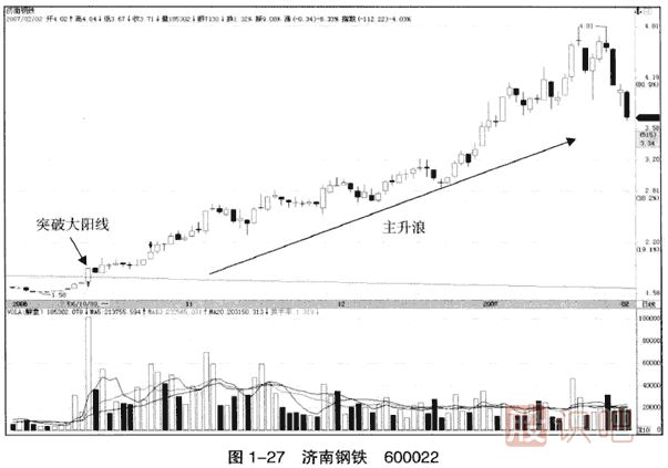 (1)圖1-27是濟(jì)南鋼鐵2006年9月20日至2007年2月2日的日線圖。