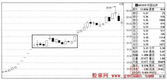 如圖是2007年中國(guó)遠(yuǎn)洋走勢(shì)圖,在圖中我們可以看到,中國(guó)遠(yuǎn)洋在經(jīng)過(guò)一輪大漲之后,橫盤休整做了矩形整理,之后又出現(xiàn)了新一輪拉升,最終從20元左右一直上漲至最高64元。