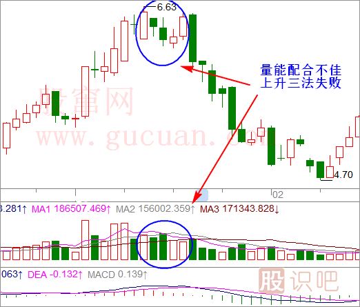 中國巨石(600176)1月13日至19日的K線組合可視為上升三法,但成交量不僅沒有放出,反而呈前高后低之勢,最后一根陽線的力度較弱,說明多方反擊的力量明顯不足,空方隨時能夠組織反撲,因此上升三法組合的結(jié)果最終以多方失敗告終。