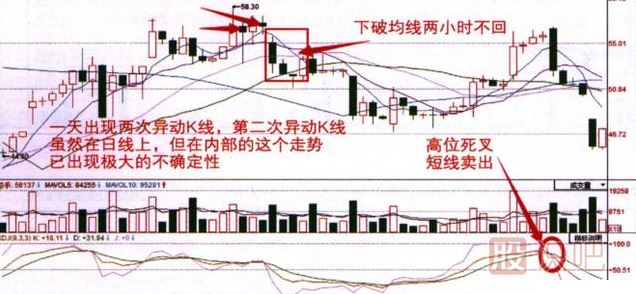 (6)5日、10日均線的方向死叉向下,此時如果60日均線也能方向向下,則助跌。