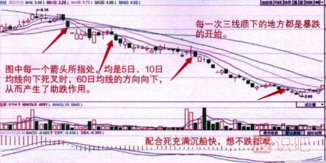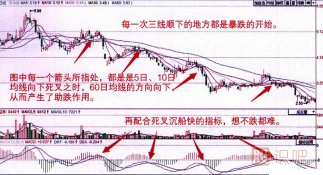 1、當5日、10日均線死叉時,如果60日均線也能方向向下,則助跌。