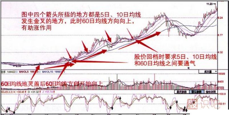 (1)當5日、10日均線金叉時,如果60日均線方向也向上時就有助漲作用。