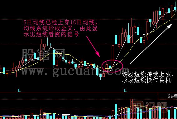 5日均線和10日均線的交叉對于短線操作具有很重要的參考價(jià)值,其表現(xiàn)在以下兩個方面: