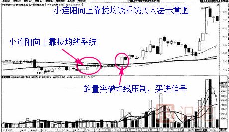 第一種 小連陽向上靠攏均線系統(tǒng)買入法