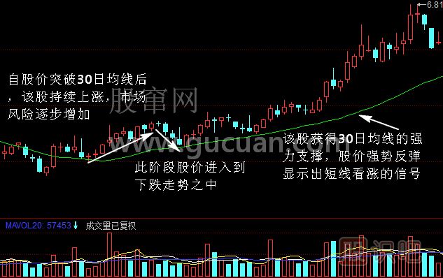 30日均線是股票在最近30個交易日中平均成交價格的連線,其反映的是股價走勢變化的中期趨勢,因此常常作為一個中線操作的均線指標,但是在短線操作中,投資者也不能忽視30日均線的巨大意義。